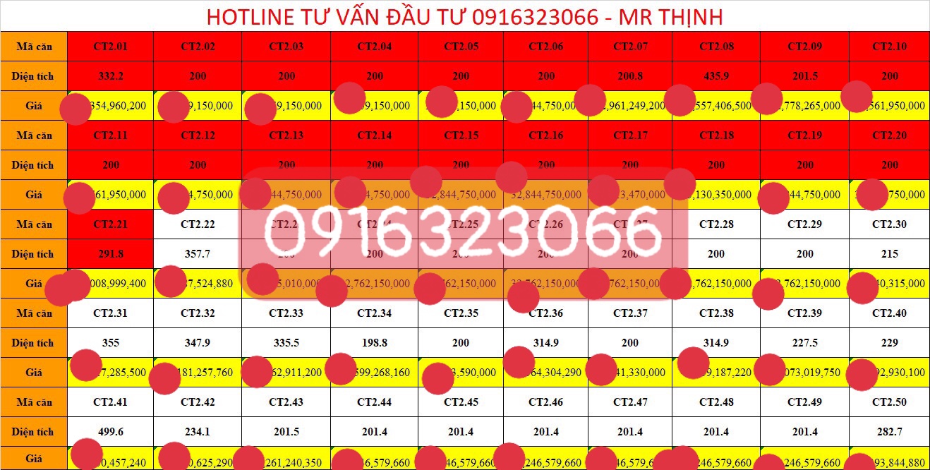 Bảng giá chi tiết: CT2 Athena Fulland – Vimefulland Nguyễn Xiển
