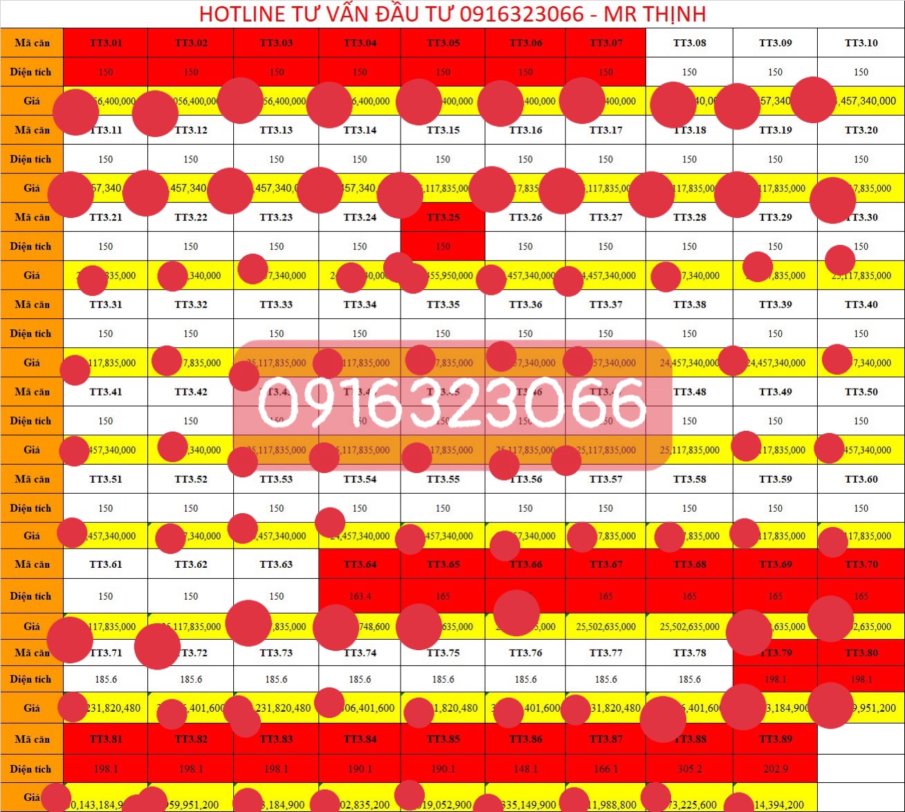 Bảng giá chi tiết: TT3 Athena Fulland – Vimefulland Nguyễn Xiển