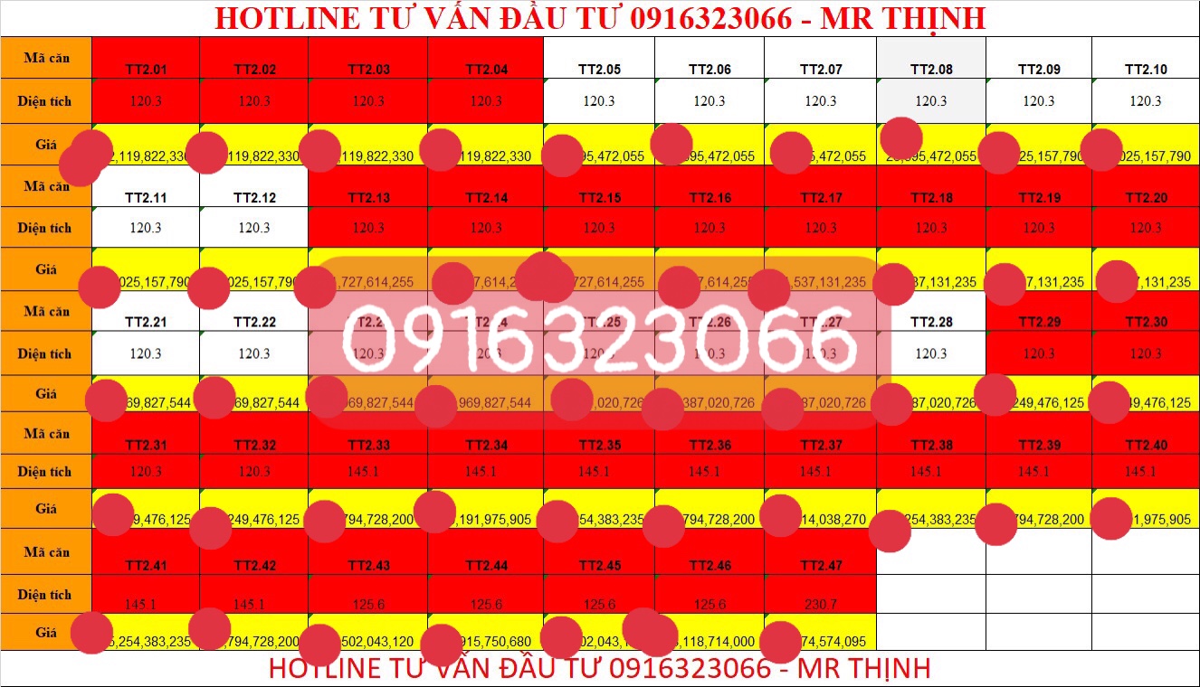 Bảng giá chi tiết: TT2 Athena Fulland – Vimefulland Nguyễn Xiển
