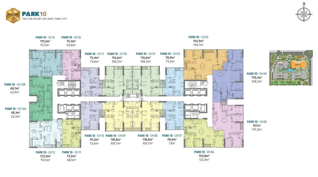 ♦  Căn hộ 5 phòng ngủ: Diện tích 178m nằm trong duy nhất tòa Park 10 Master Premium
