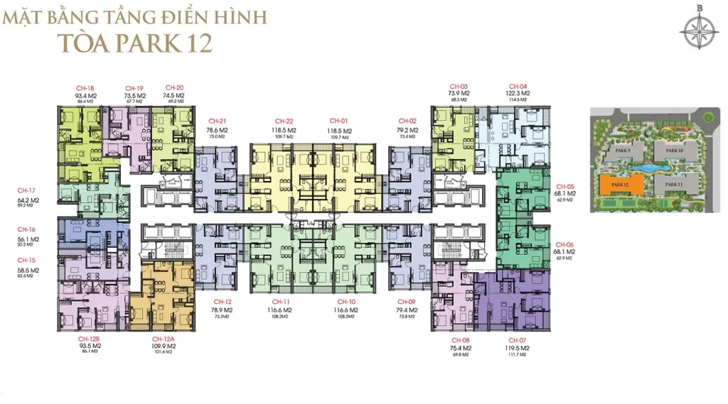 Quy mô dự án: Bao gồm 4 tòa tháp căn hộ cao cấp Park 9 – Park 12