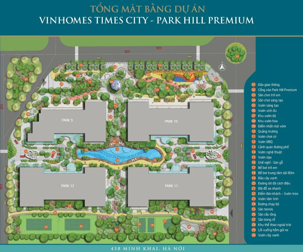 Dưới đây là bản đồ vị trí Park Hill Premium trong quần thể khu đô thị Times City 458 Minh Khai: