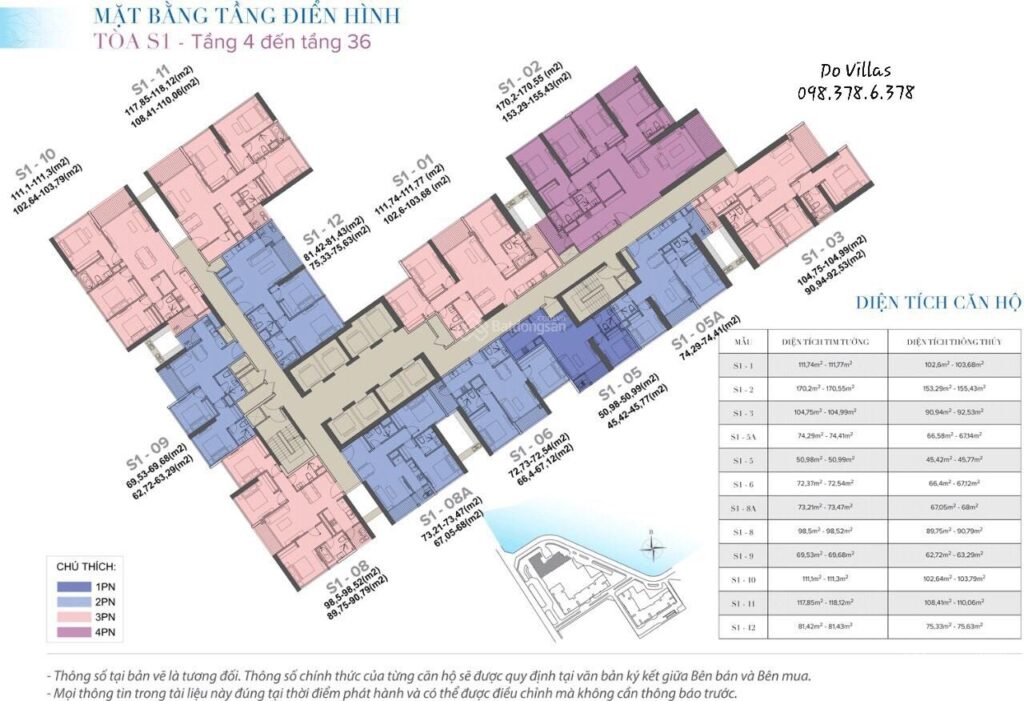 – Tòa S1 4PN to nhất 170m2 giá 12,5 tỷ.