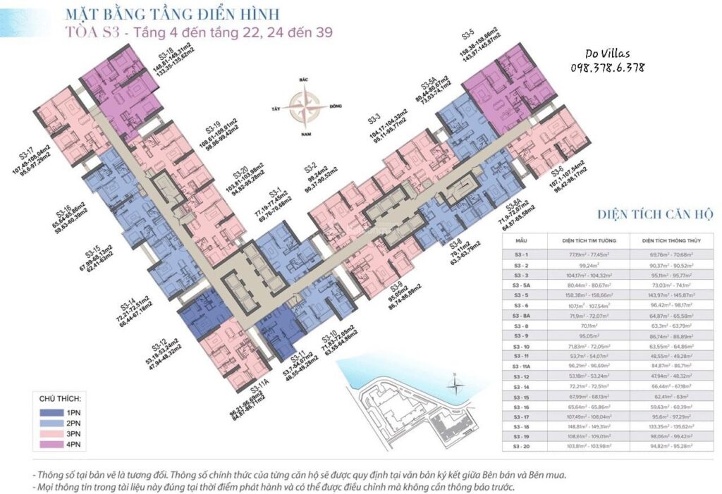 Tòa S3 Căn 02,03, 20,17, 19 giá từ 5,8 tỷ view hồ trực diện (101m2 – 110m2).