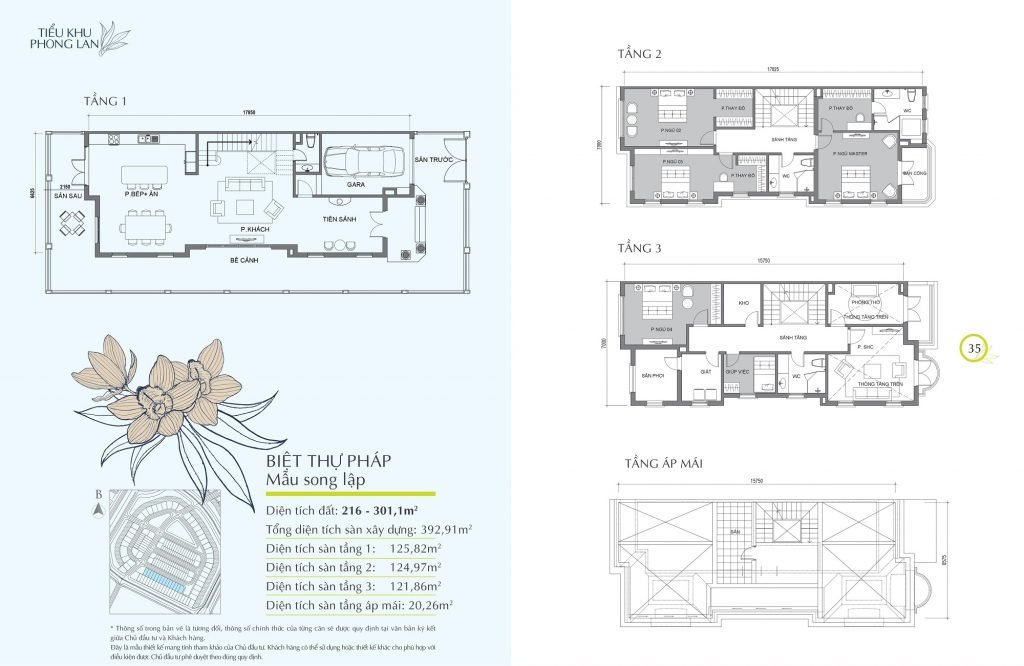 Biệt thự song lập Phong Lan (Hay còn gọi là biệt thự song lập Pháp) được xây dựng với diện tích đất 216 – 301 m2, nằm tại mặt đường Phong Lan 4, thuộc tiểu khu Phong Lan Vinhomes The Harmony.