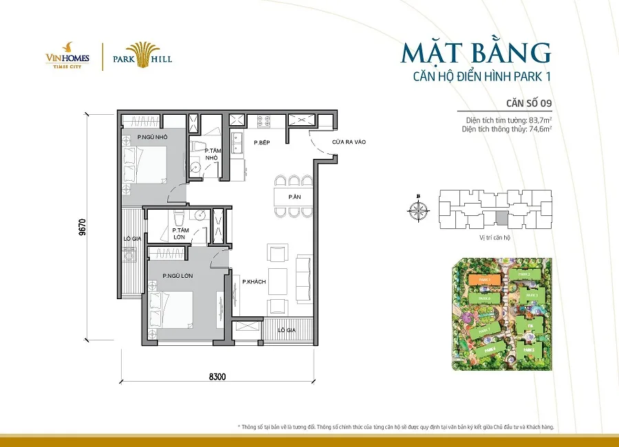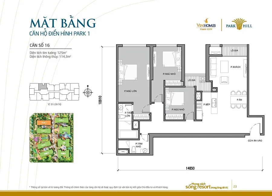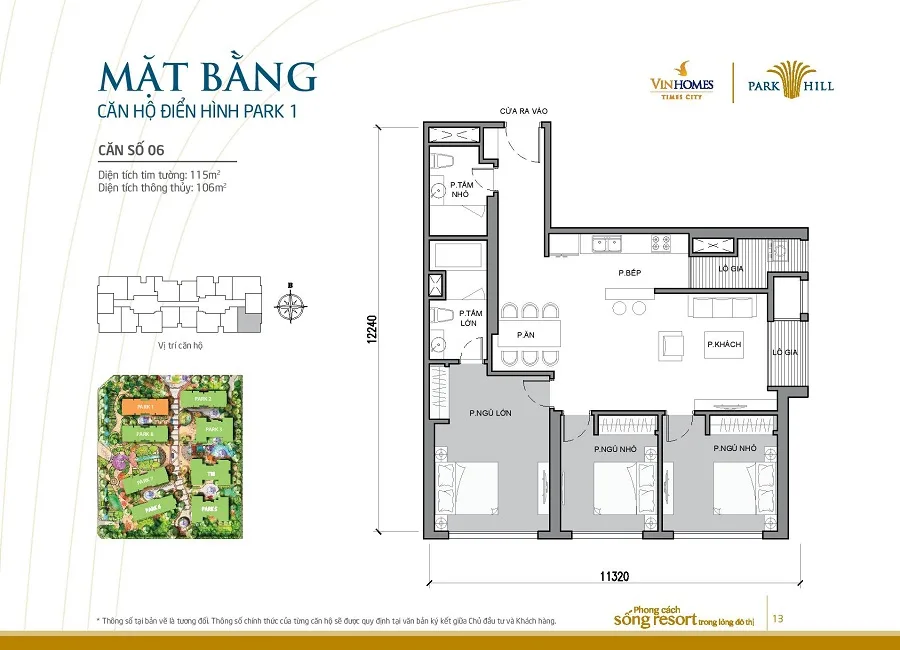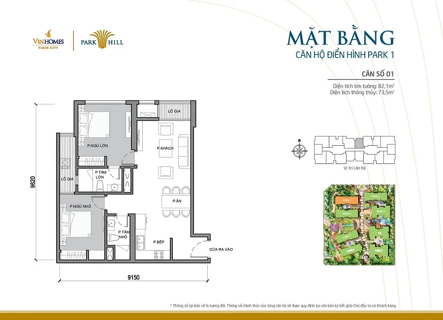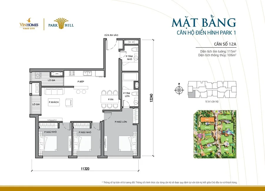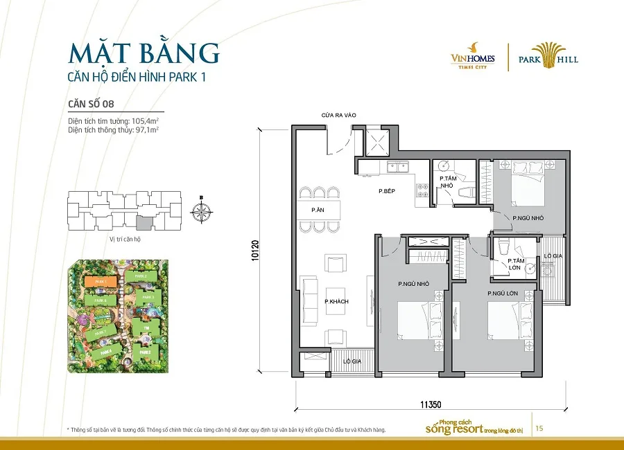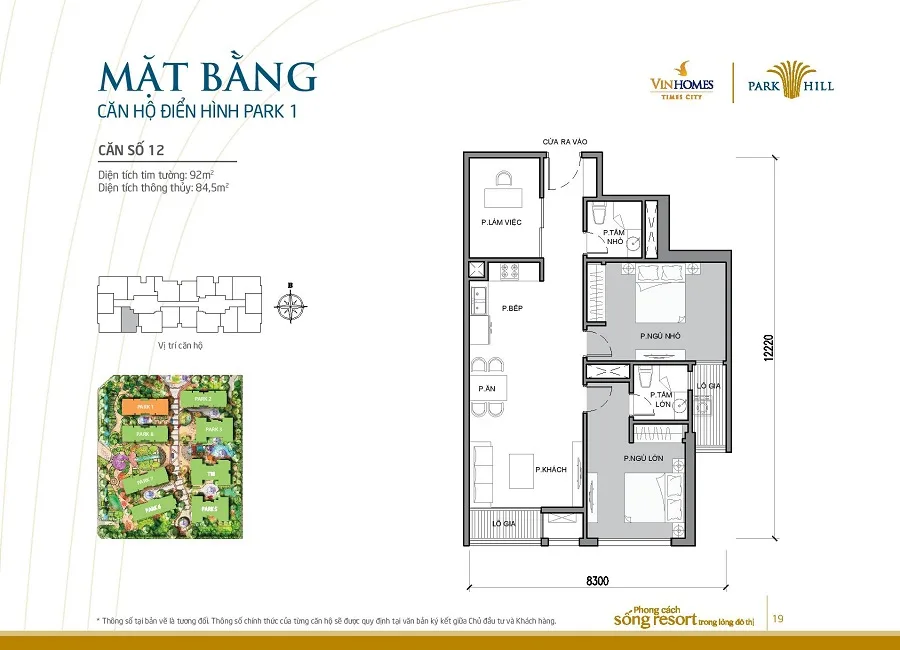 Mặt bằng thiết kế căn hộ tòa Park 1 Times City