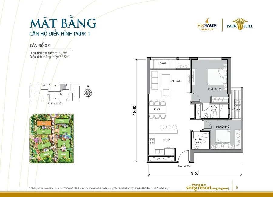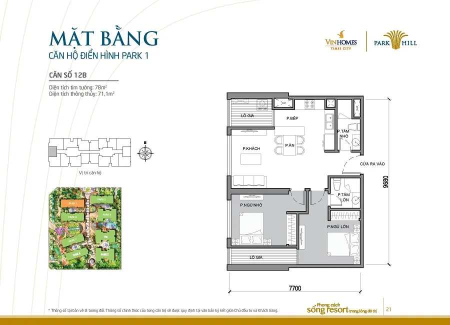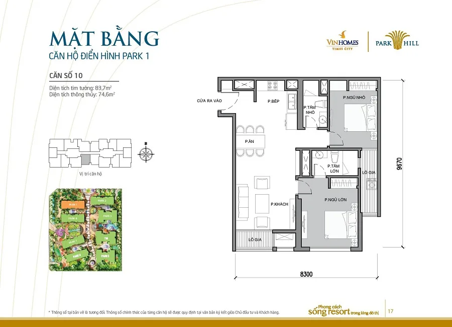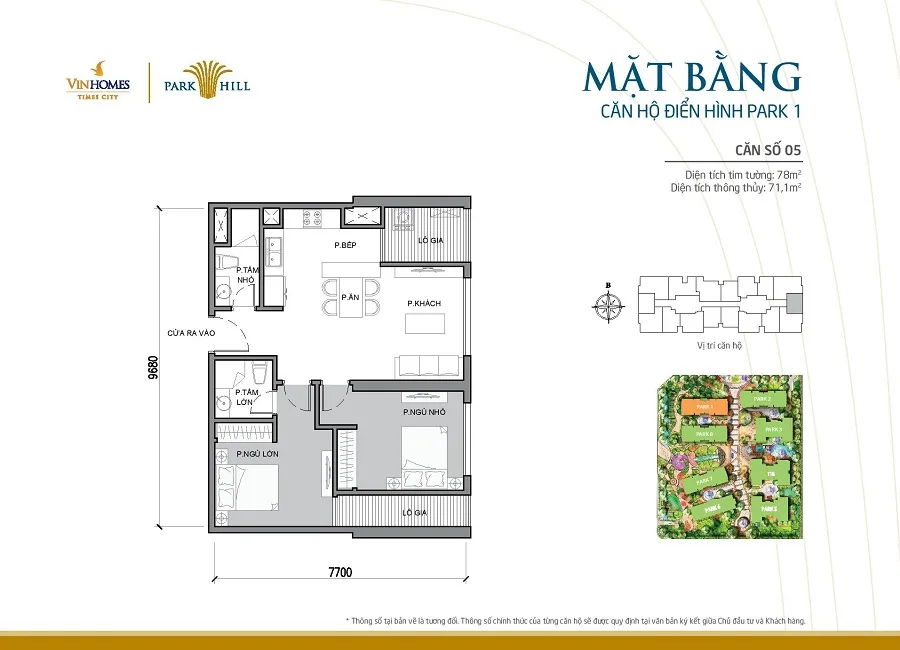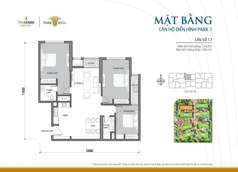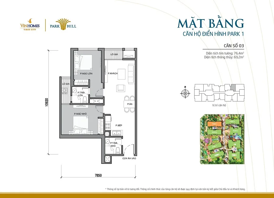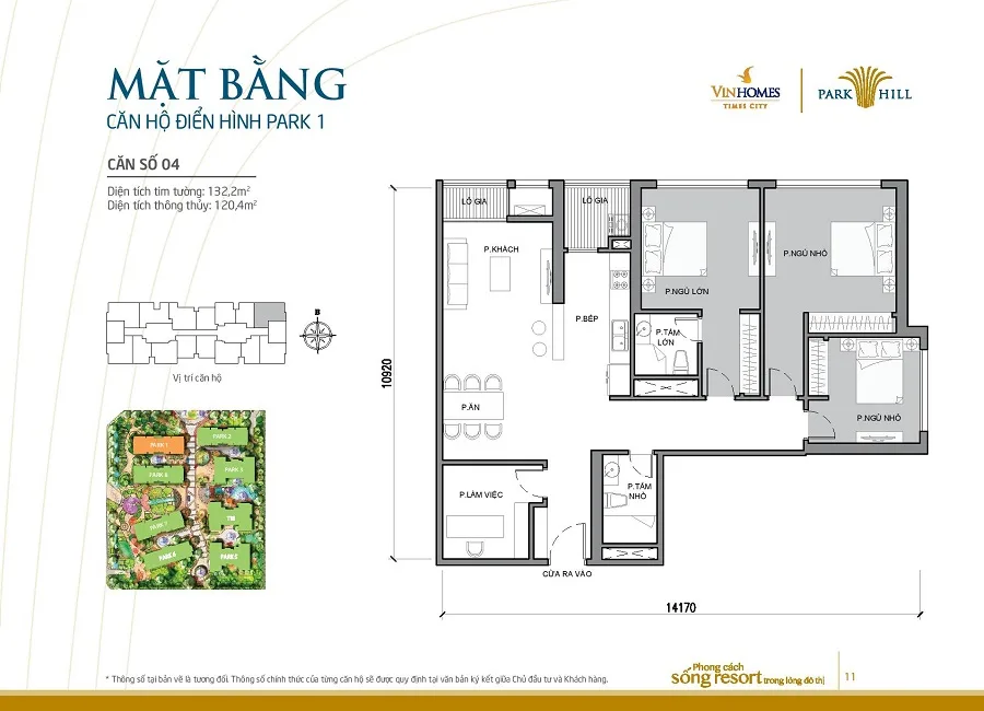 Mặt bằng thiết kế căn hộ tòa Park 1 Times City