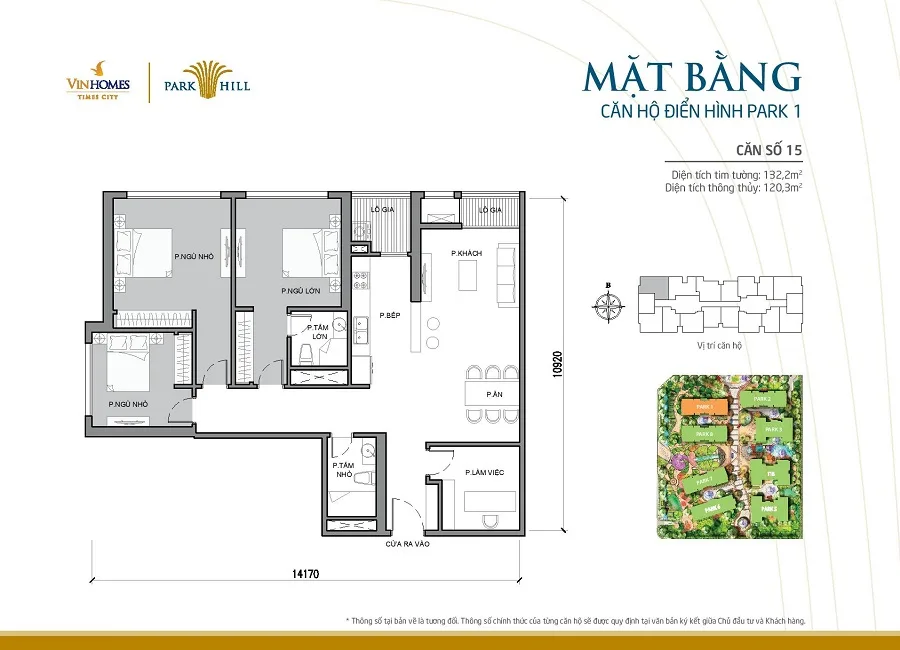 Ngoài ra, tòa Park 1 cũng sở hữu một vài điểm riêng biệt so với các tòa còn lại: Tại các căn hộ 92 m2 (Căn số 07 & 12) và căn hộ 132.2 m2 (Căn số 04 & 15), ngoài các phòng ngủ thông thường với cửa sổ lớn hướng tới không gian bên ngoài, còn có thêm các phòng ngủ nhỏ với diện tích khoảng 6 – 8 m2. Gia chủ hoàn toàn có thể tùy ý sử dụng làm phòng làm việc, phòng thờ, phòng chứa đồ hoặc phòng ngủ cho người giúp việc.