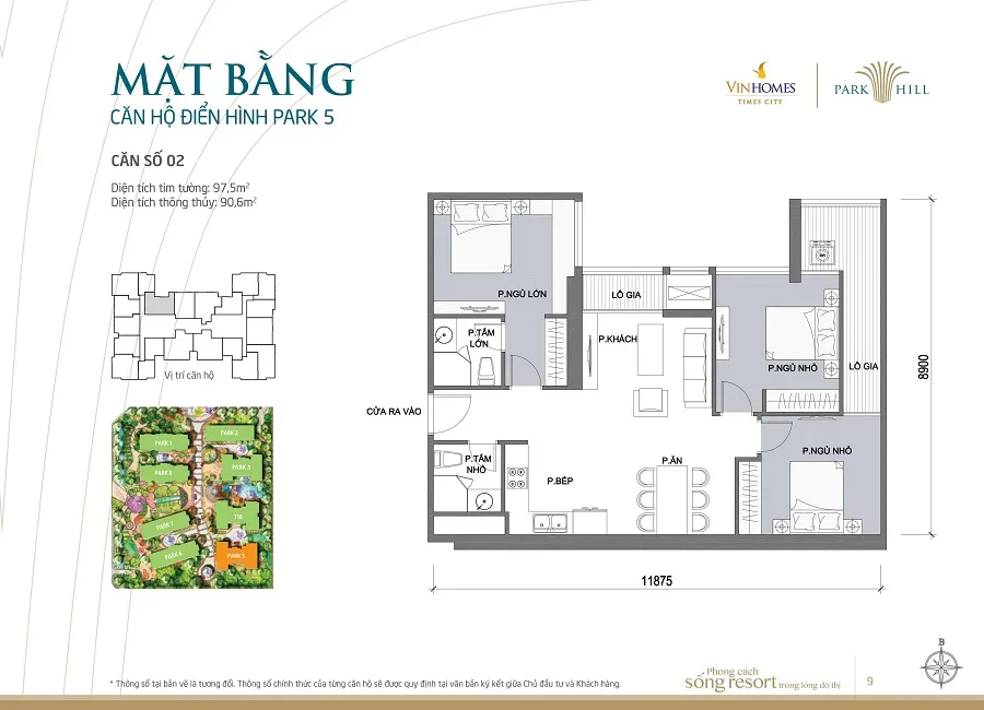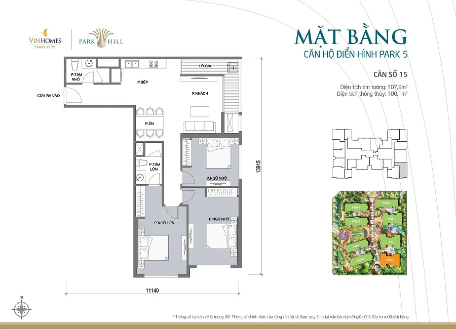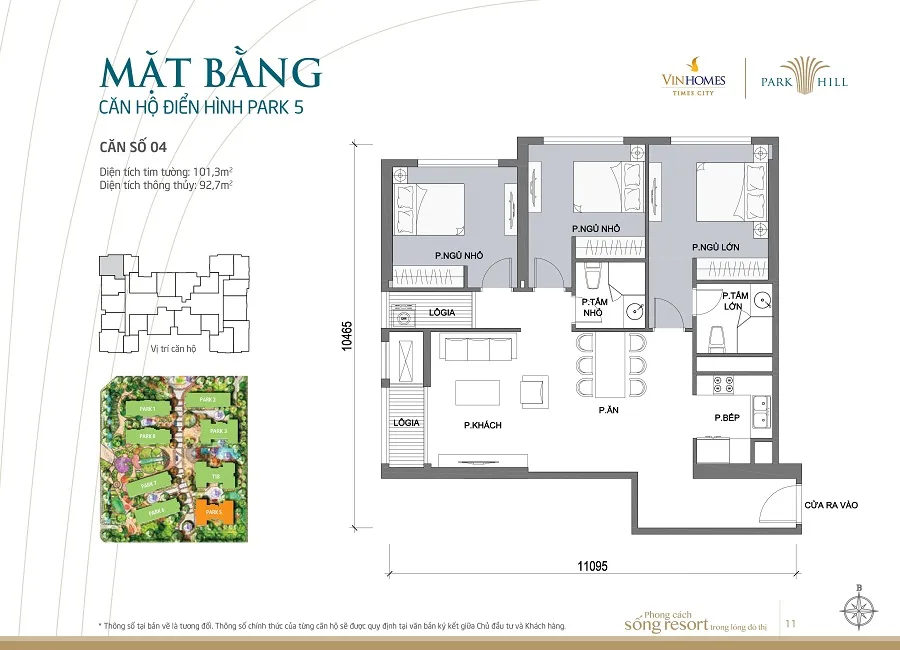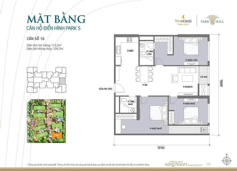 Mặt bằng thiết kế căn hộ tòa Park 5 Times City