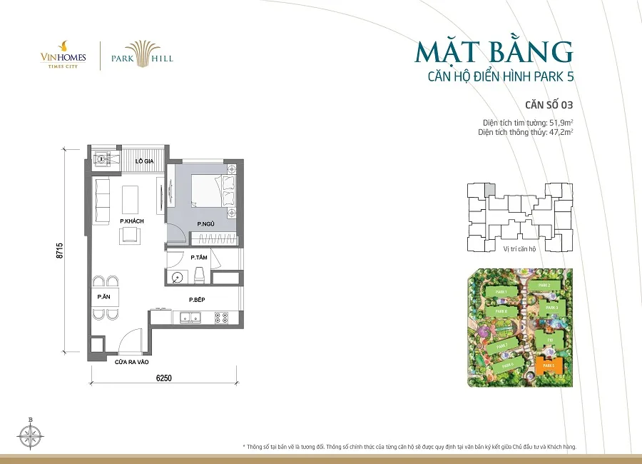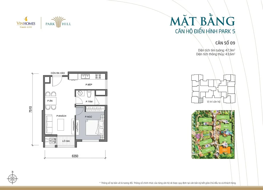 Đồng thời, Park 5 cũng là tòa tháp duy nhất tại Times City Park sở hữu các căn hộ 1 phòng ngủ nằm tại vị trí góc của tòa nhà (căn hộ số 03 & 09). Trong đó, căn hộ số 09 với thiết kế vuông vắn cùng vị trí góc Đông Nam, đang được xem là căn hộ 1 phòng ngủ đẹp nhất trong toàn dự án Times City Minh Khai.