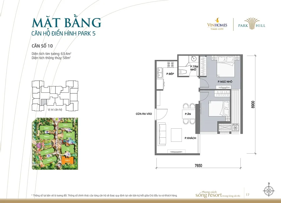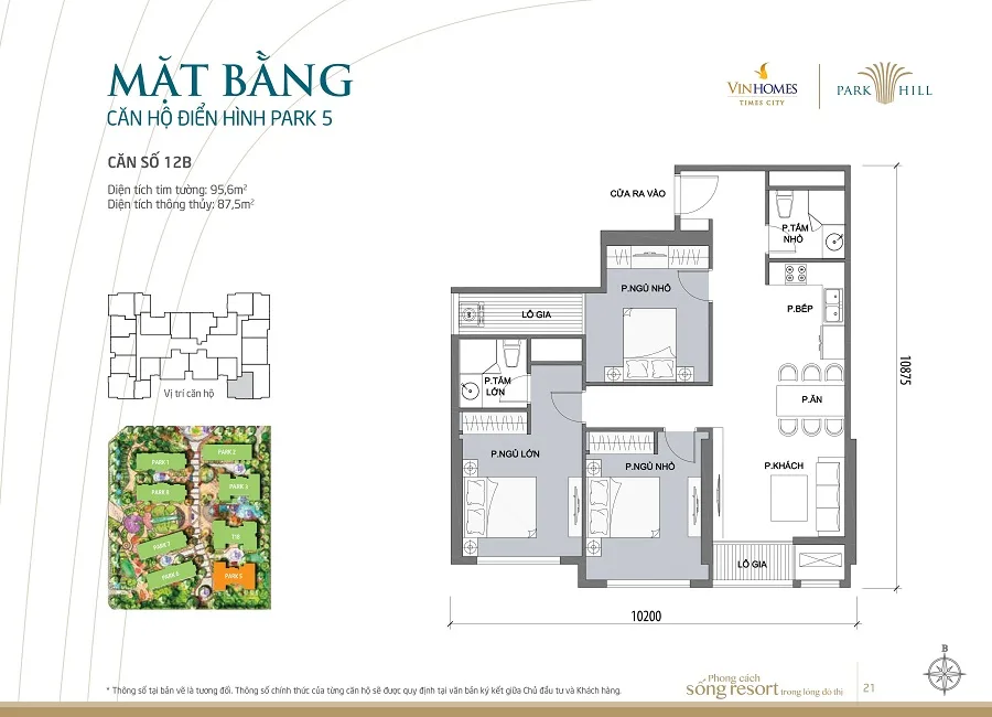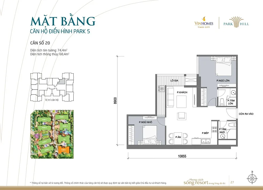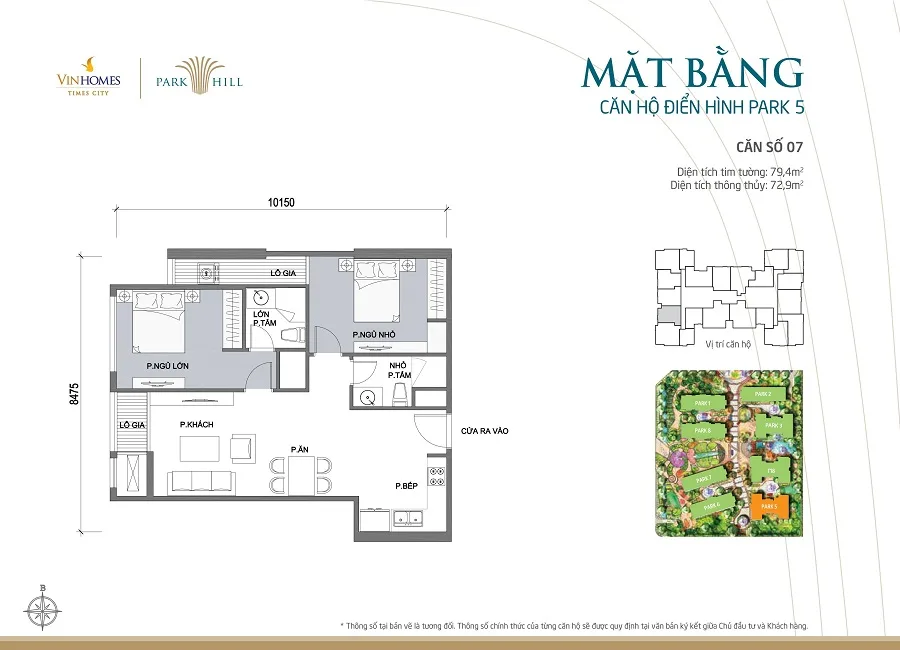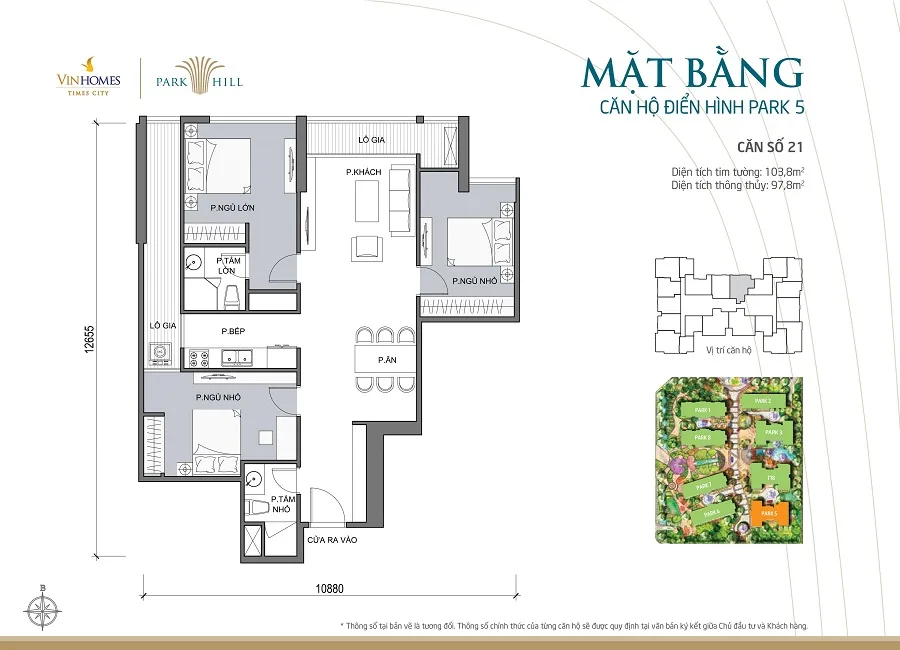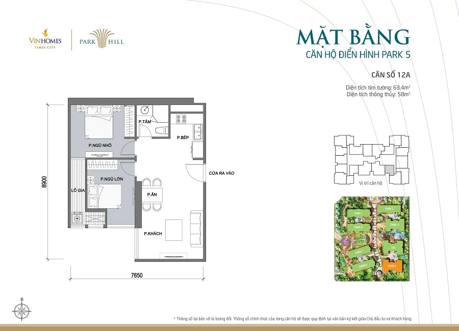 Ngoài ra, Park 5 Times City cũng sở hữu loại căn hộ 2 phòng ngủ có giá bán thấp nhất tại Park Hill: Đó chính là 2 căn hộ số 10 & 12A, với diện tích 63.4 m2, ban công hướng Nam, nằm đối xứng với nhau. Được biết, giá bán các căn hộ này được Vingroup đưa ra chỉ khoảng 2.2 – 2.5 tỷ/căn hộ trong đợt đầu mở bán.