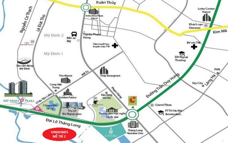 Nằm chỉ cách Vinhomes Green Bay chưa đầy 500m qua cây cầu vượt Đỗ Đức Dục, cư dân Vinhomes Mễ Trì giai đoạn 2 cũng sẽ dễ dàng có thể di chuyển đến các khu vực trọng điểm thành phố qua trục đường Đại Lộ Thăng Long – Trần Duy Hưng – Khuất Duy Tiến – Phạm Hùng.